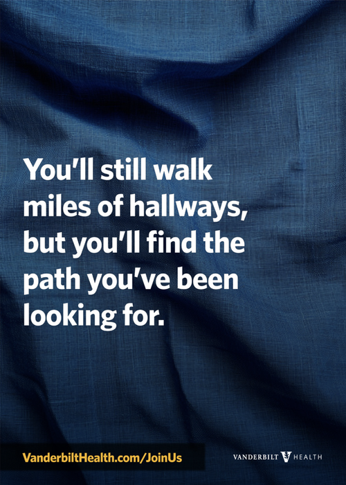 So, in order to stand out in that sea of sameness and catch a nurse’s eye, we tried to make them feel seen. This campaign didn’t shy away from the hard parts of being a nurse. Instead, it reframed those struggles by communicating all the reasons this tough job is better at Vanderbilt.